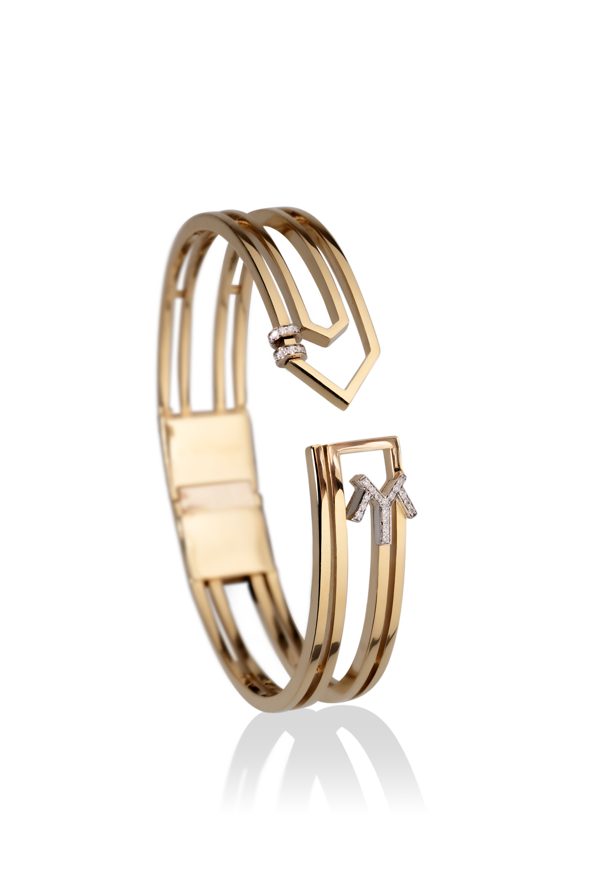 MY Paperclip diamond bangle, 18K yellow gold, diamonds.
